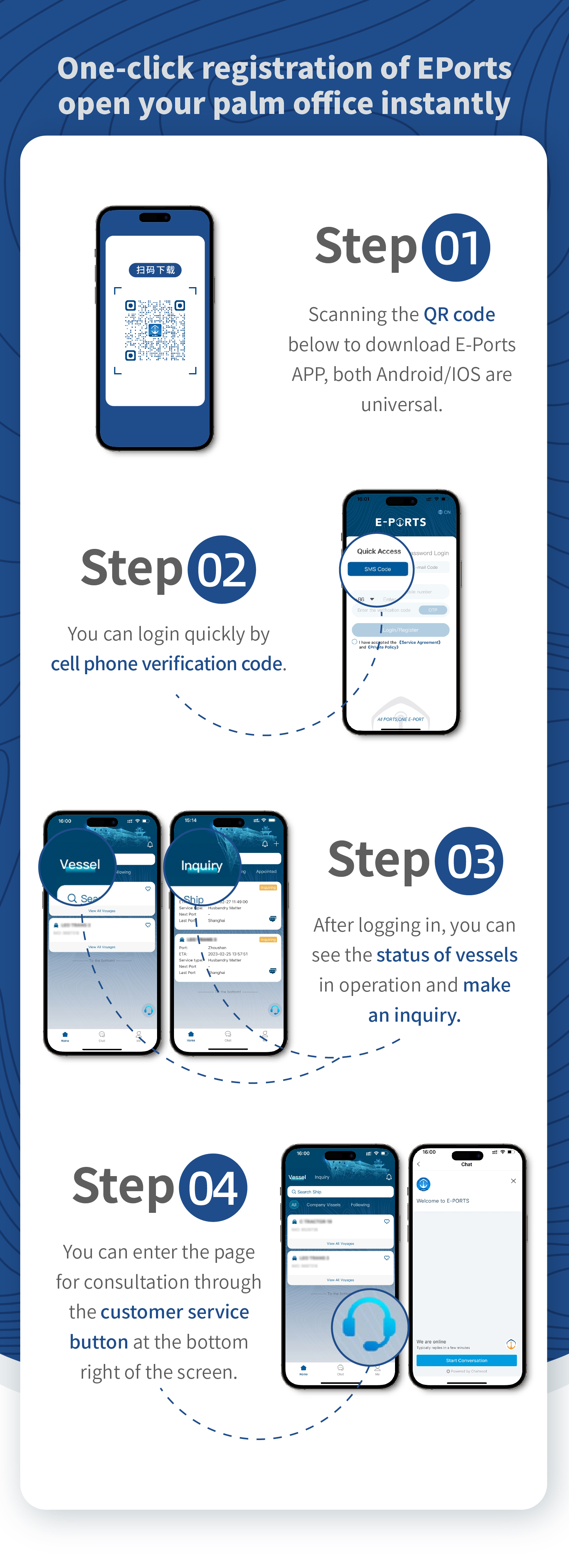 If you require vessel schedule inquiries, booking consultations, port information inquiries, or sea freight rate consultations, you can add E-PORTS online customer service on WeChat, and we will be wholeheartedly at your service!