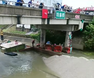 June 8th – Following days of heavy rain, the water flow in Changzhou's Wuyi Canal became dangerously swift, transforming the usually calm waterway into “turbulent rapids.” That afternoon, the section near Fangqian Bridge became the scene of a sinking incident.According to a preliminary investigation by the Changzhou Local Maritime Department, a cargo ship fully loaded was passing through this area when it was suspected to be caused by the impact of the unusually turbulent current. Compounding the danger, the water level in this stretch is relatively shallow. Unfortunately, the ship's bottom violently collided with obstacles on the riverbed.